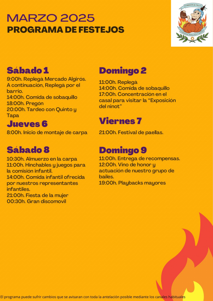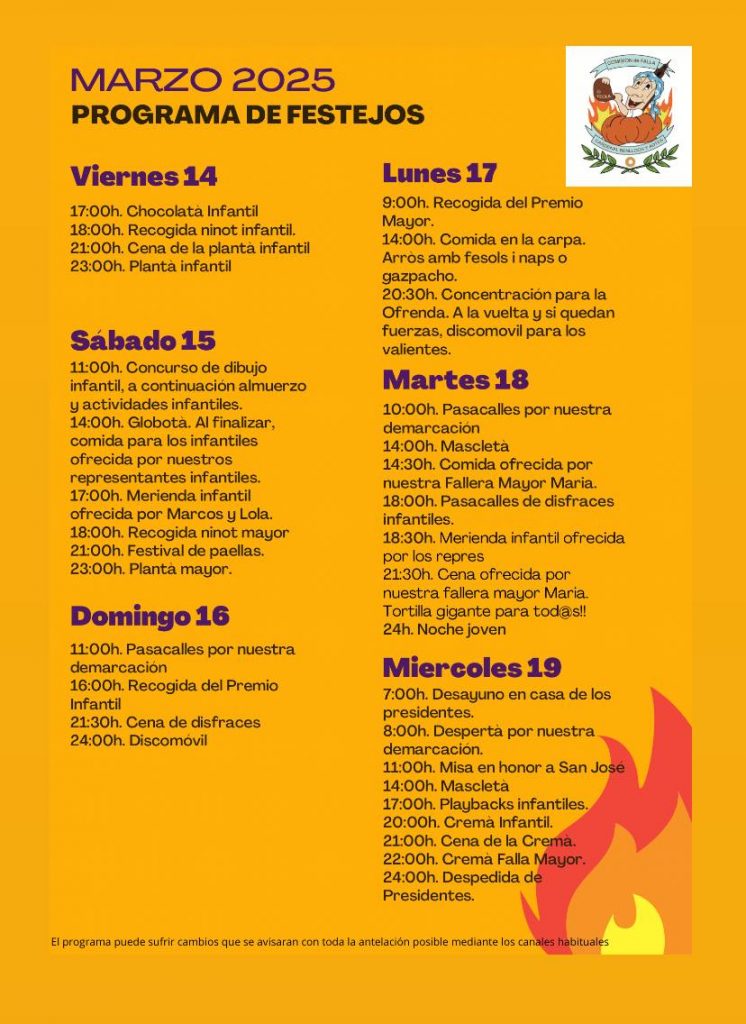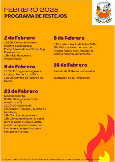 IMPORTANTE. El presente programa de festejos puede sufrir cambios que se avisarán con toda la antelación posible por los canales habituales.